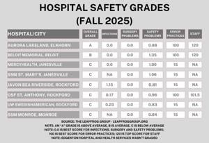 The hospital, located at 1969 W. Hart Road, excelled particularly in areas concerning infection control, surgical safety, error prevention practices, and adequate staffing. This B grade positions Beloit Memorial Hospital as the best-performing facility in Rock County and second highest in the surrounding region. The facility has a strong track record in these assessments, having received a B in the spring and A grades in both the spring and fall of 2024.