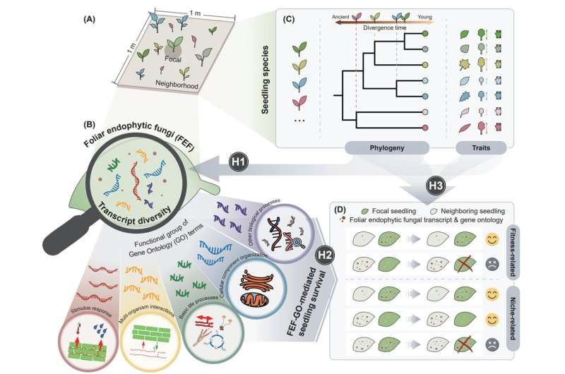 The research team analyzed transcriptomic data from seedlings of 103 woody species in the Gutianshan forest plot, incorporating species-level functional traits and long-term monitoring data. By extracting and functionally annotating transcripts from FEF, the study connects microbial functional genomics with contemporary coexistence theory, providing insights into how these fungi influence host fitness, niche differentiation, and ultimately, seedling survival.