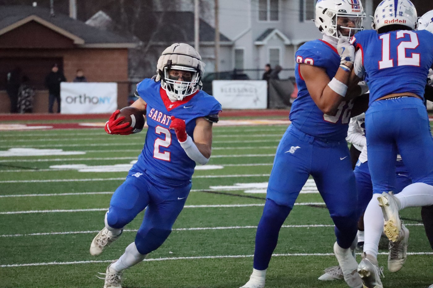 URGENT UPDATE: The high school football showdown between Saratoga Springs and Mamaroneck has kicked off with an explosive start! Just minutes into the first quarter, Saratoga Springs senior running back Ben Coryea sprinted for a stunning 64-yard rushing touchdown, putting the Blue Streaks ahead 7-0 at the 11:37 mark.