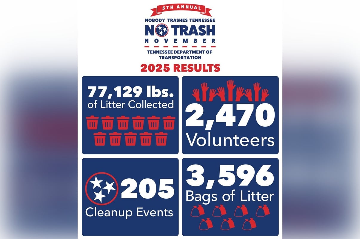 The Tennessee Department of Transportation (TDOT) reported that volunteers collected 3,596 bags of trash, showcasing a remarkable commitment to environmental stewardship. Governor Bill Lee officially proclaimed November as No Trash November Month, emphasizing the importance of community involvement in keeping Tennessee beautiful.